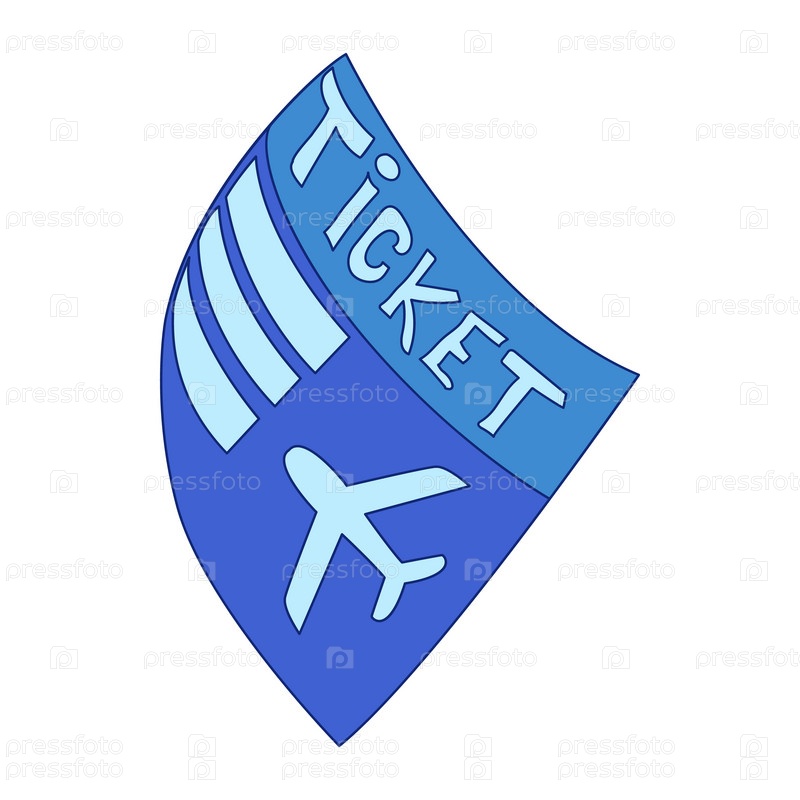 Синий значок авиабилета в стиле мультфильма на белом фоне