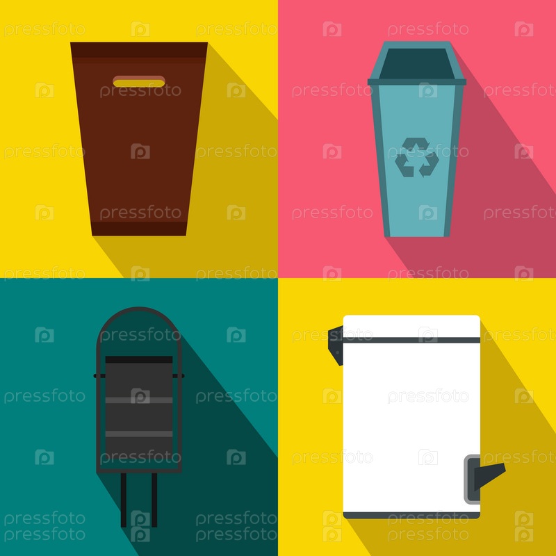 Набор баннеров мусорной корзины, плоский стиль