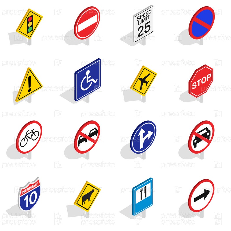 Набор икон дорожных знаков, изометрический 3D-стиль