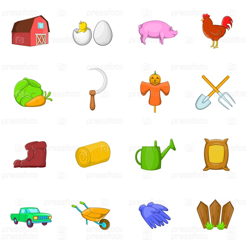 Набор икон фермы, в стиле мультфильма