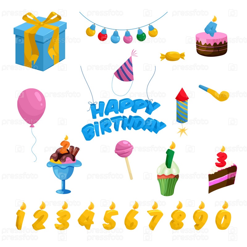 Набор икон на день рождения, в стиле мультфильма