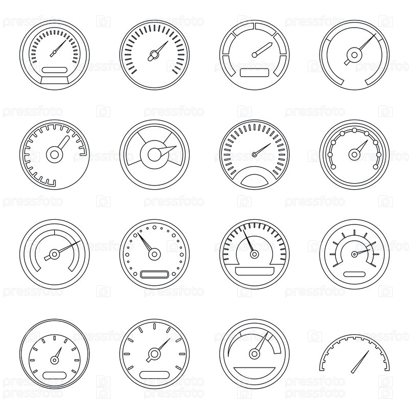Набор икон спидометра, стиль контуры