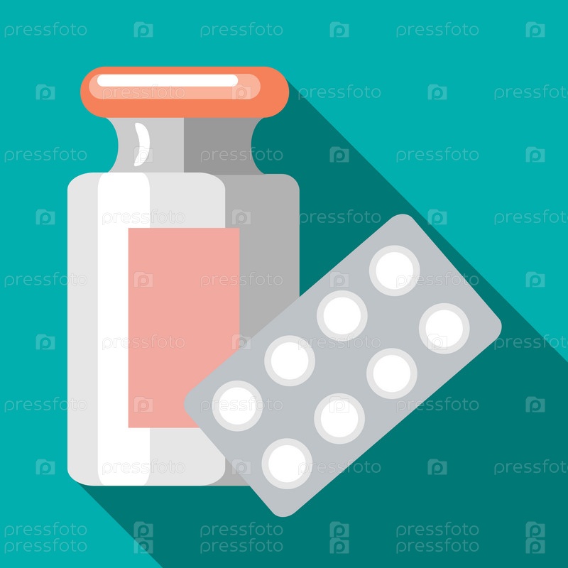 Таблетки в блистерной упаковке и значке бутылки, плоский стиль