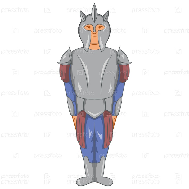 Икона средневекового рыцаря в стиле мультфильма на белом фоне