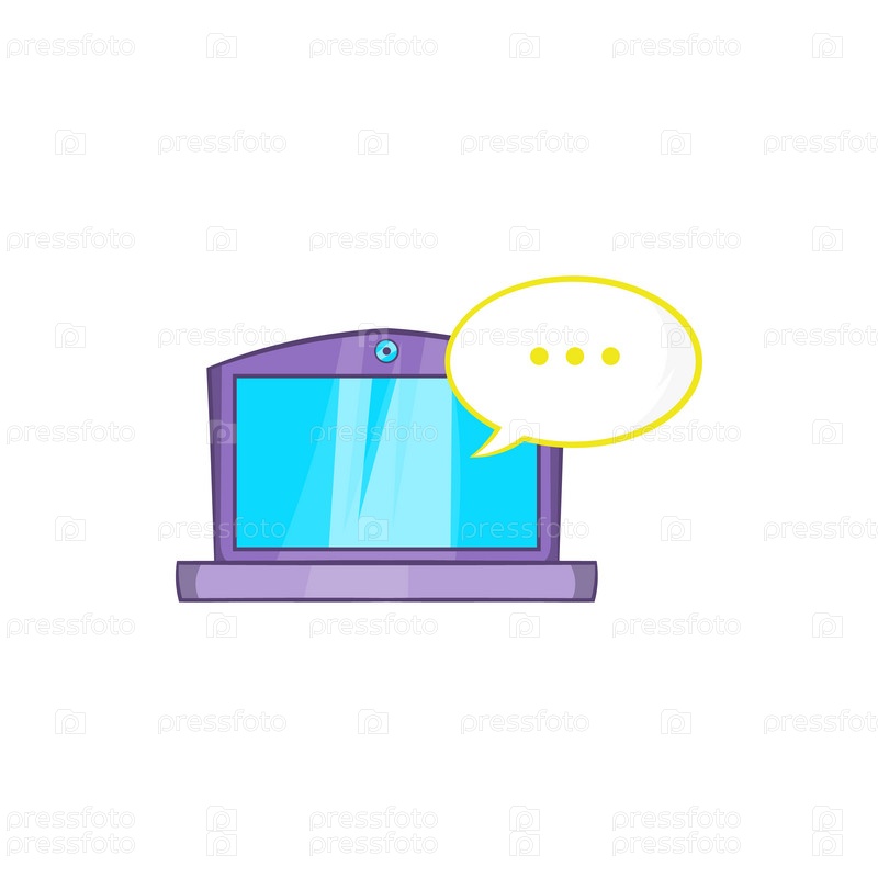 Онлайн-икона компьютерного чата в стиле мультфильма на белом фоне