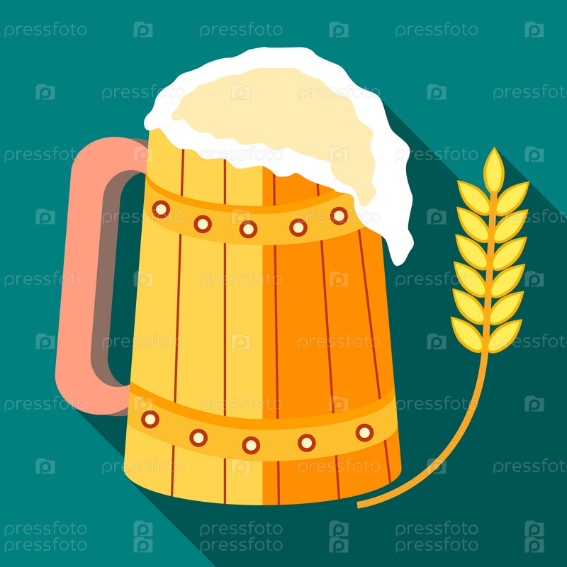Деревянная кружка пива и стебель спелой ячменной иконы