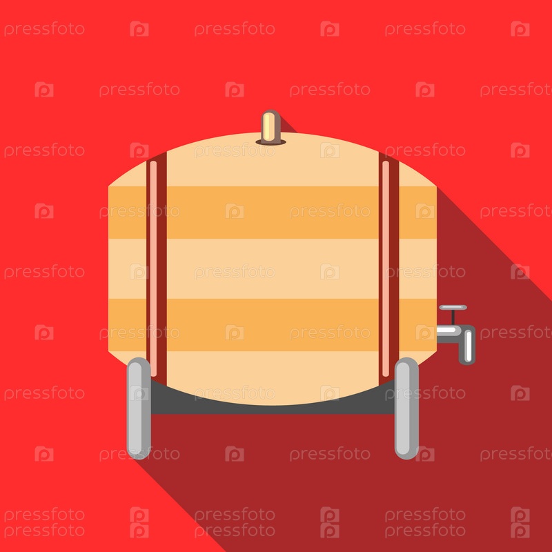 Деревянная бочка пива с иконой крана в плоском стиле на красном фоне