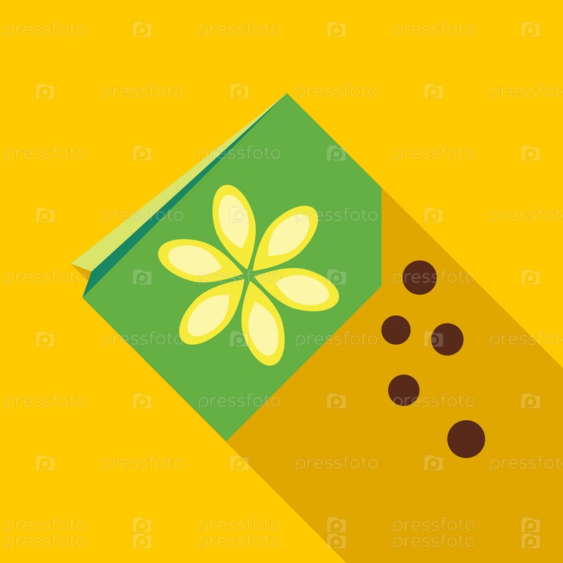 Бумажный пакет с иконой цветочных семян в плоском стиле на желтом фоне