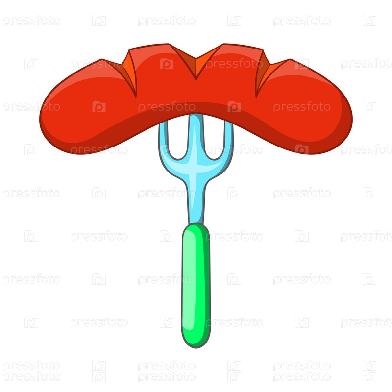Сосиска на вилке икона, в стиле мультфильма