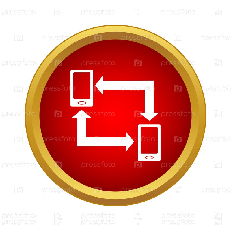 Иконка обмена данными между двумя телефонами в простом стиле на белом фоне