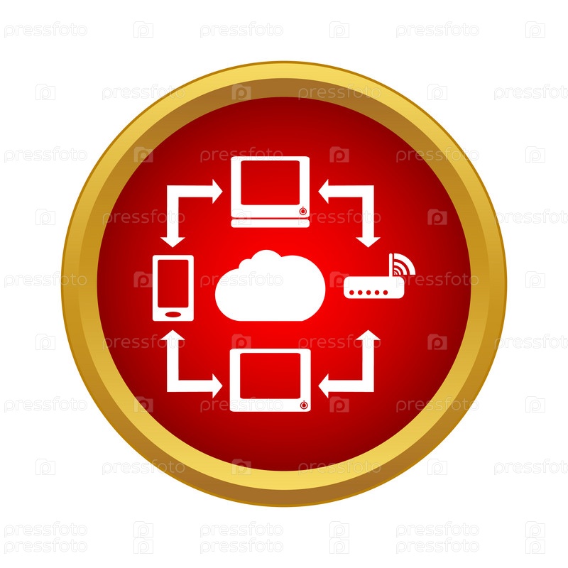 Устройства, подключенные к иконе облака в простом стиле на белом фоне