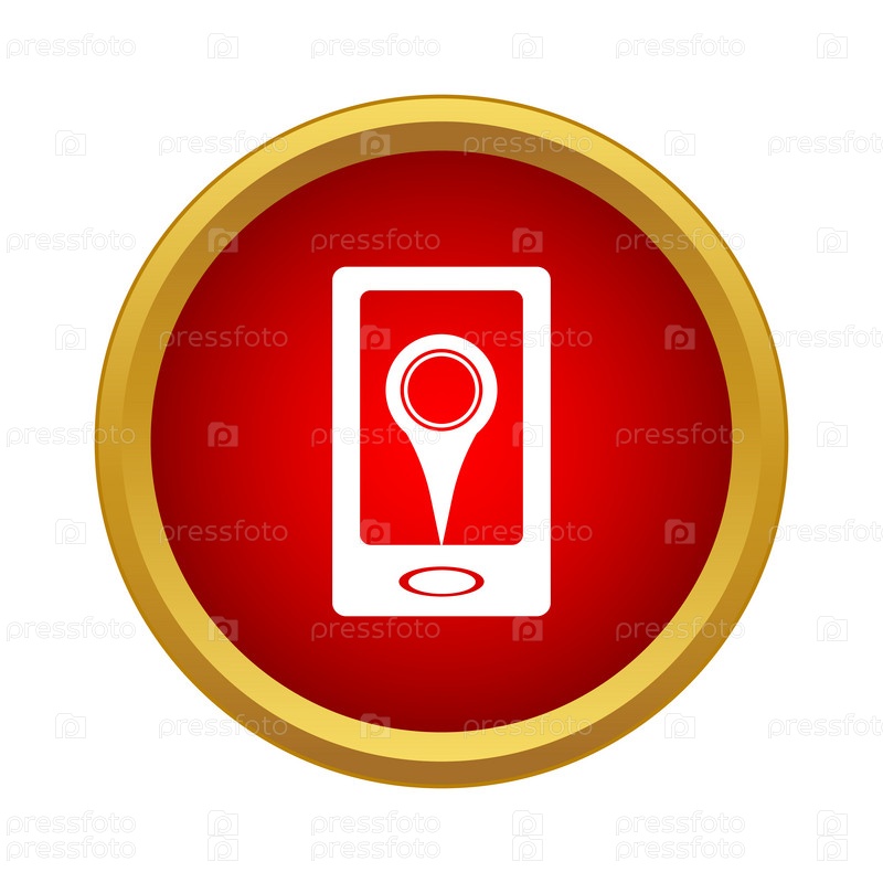 Телефон с иконой фиксатора местоположения в простом стиле на белом фоне