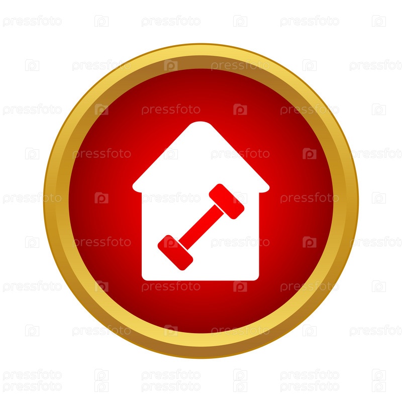 Дамбелл в иконе дома в простом стиле на белом фоне