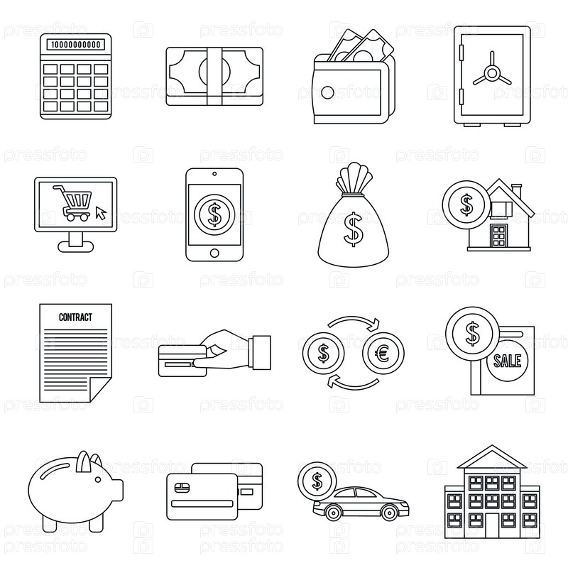 Набор икон, контурный стиль Credit style