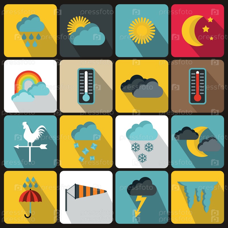 Набор икон погоды, плоский стиль