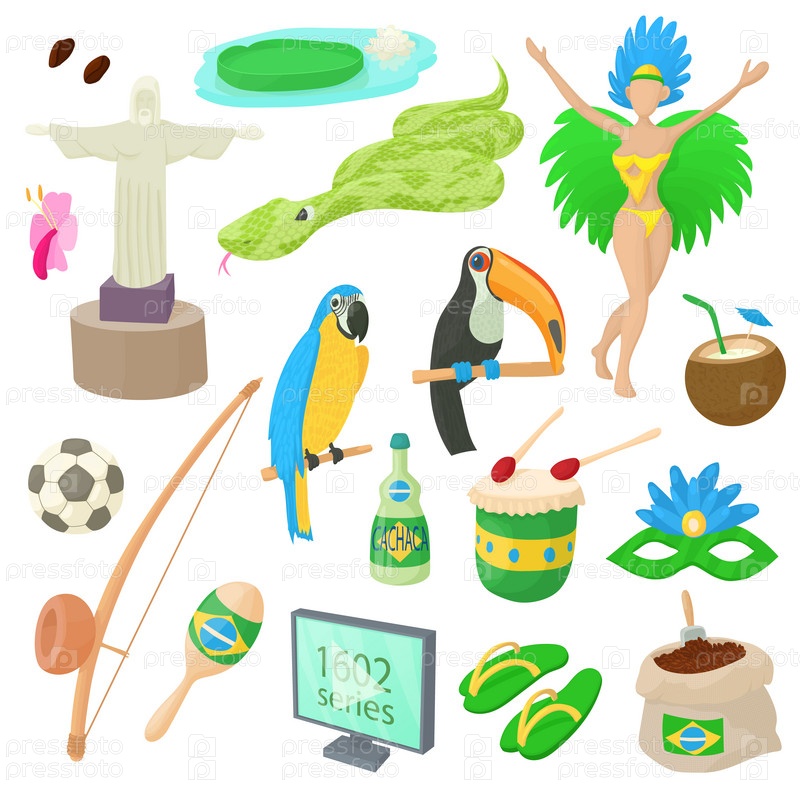 Набор икон, карикатурный стиль Бразилии
