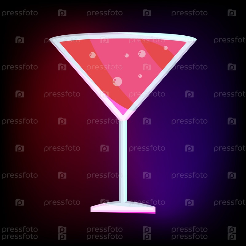 Стакан мартини с красной коктейльной иконой в стиле мультфильма для любого дизайна