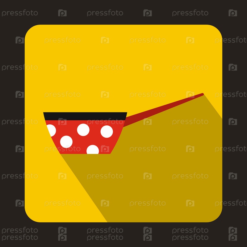 Красный горшок с белыми точками и иконой ручки в плоском стиле на желтом фоне