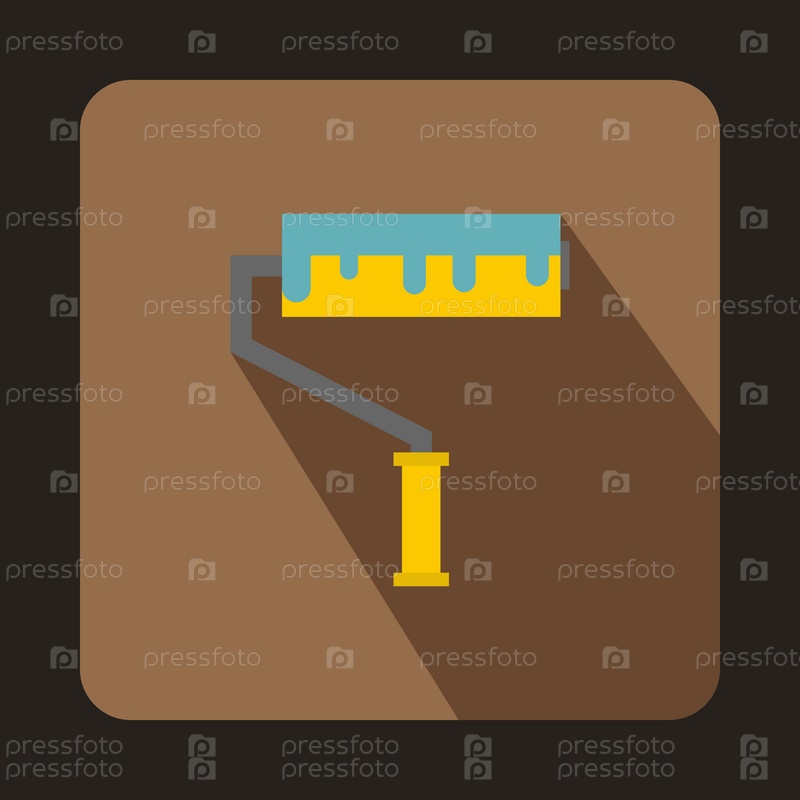 Ролик для покраски с синей иконой краски в плоском стиле на фоне кофе