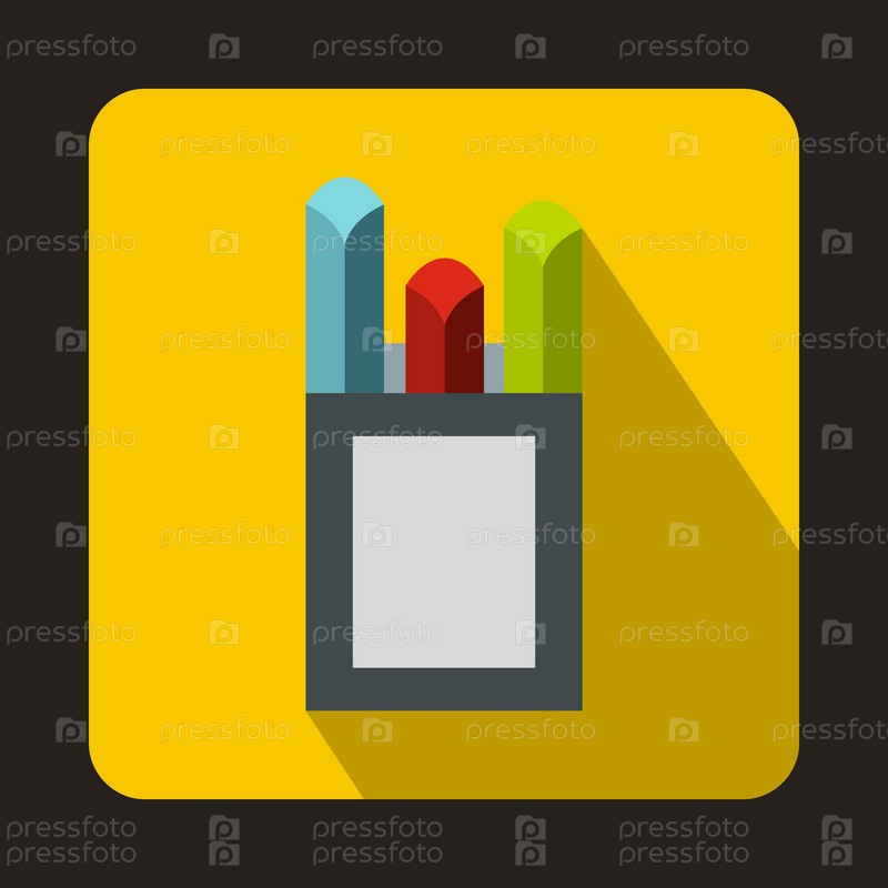 Красочные мел в картонной коробке икона в плоском стиле на желтом фоне