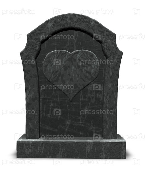 Надгробие с символом сердца на белом фоне - 3d иллюстрация