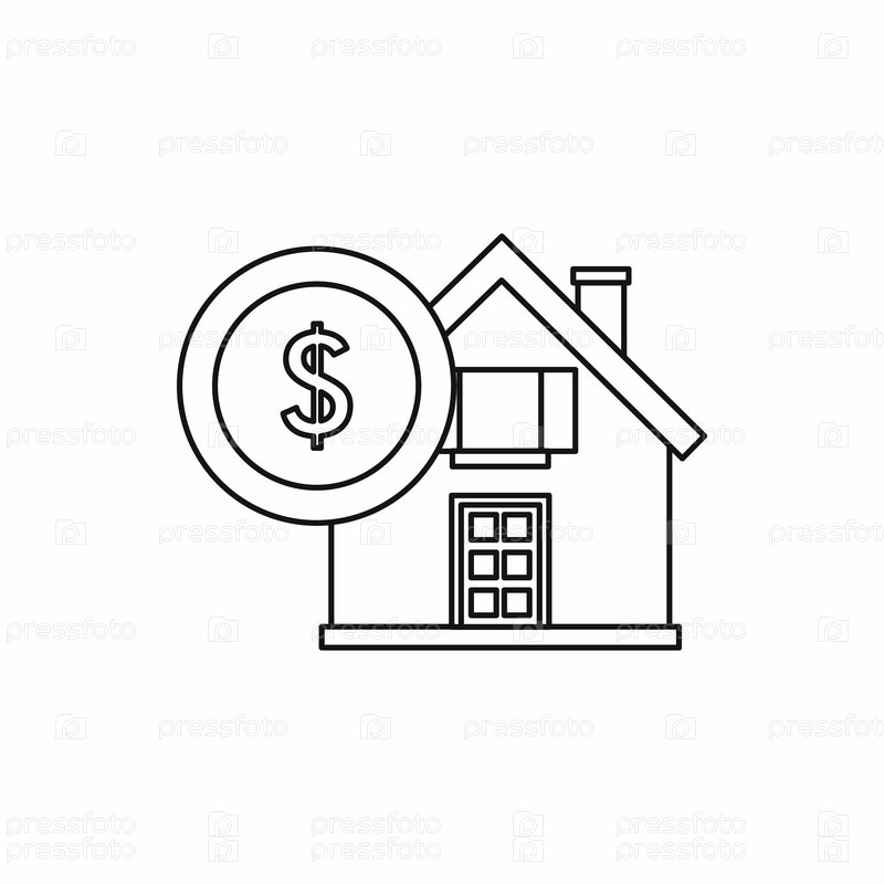 Икона дома и знака доллара, стиль контуры