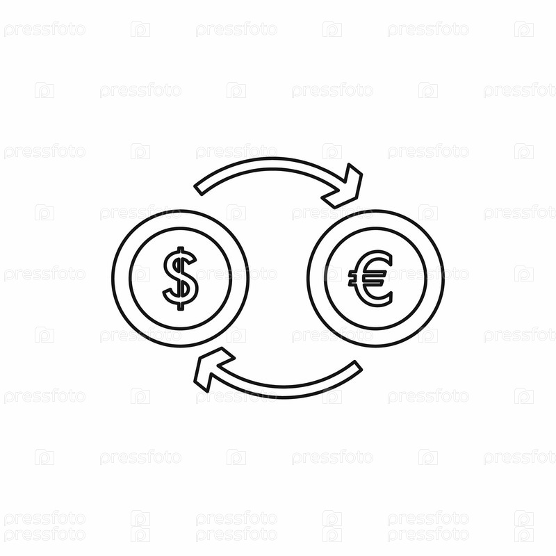 Иконка обмена евро доллара на евро, стиль контуры