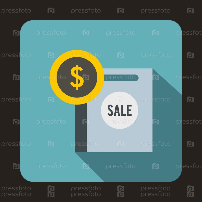 Знак доллара и торговая сумка для продажи Икона в плоском стиле на светло-синем фоне