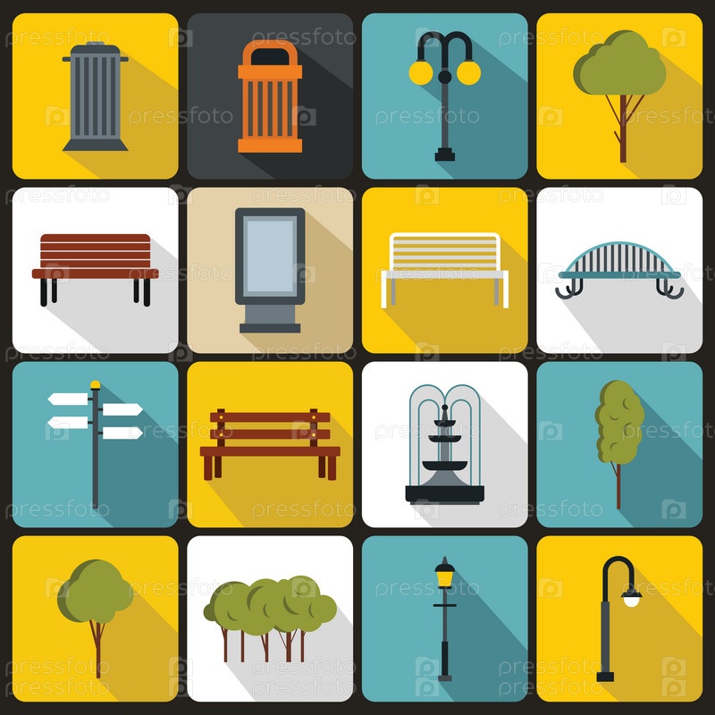 Набор икон парка, плоский стиль