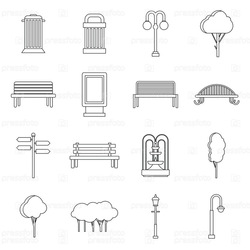 Набор икон парка, контурный стиль