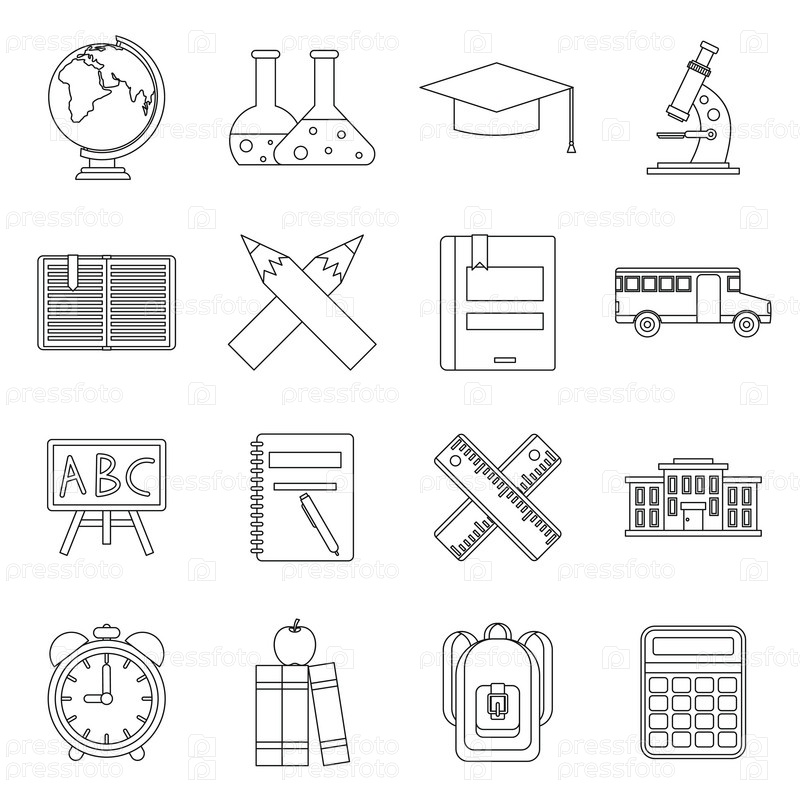 Набор школьных икон, контурный стиль