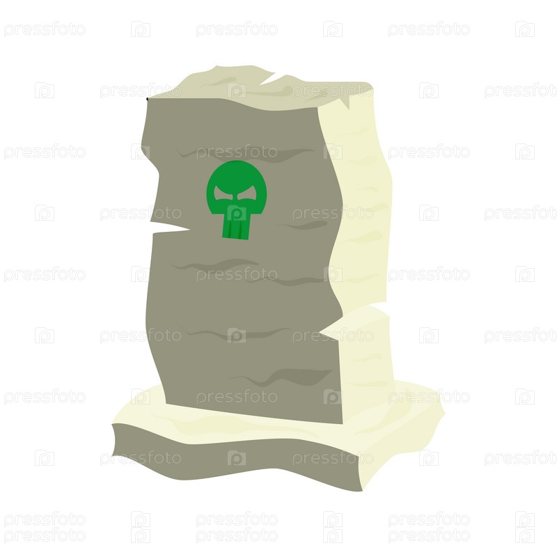 Надгробный камень с иконой черепа в стиле мультфильма на белом фоне