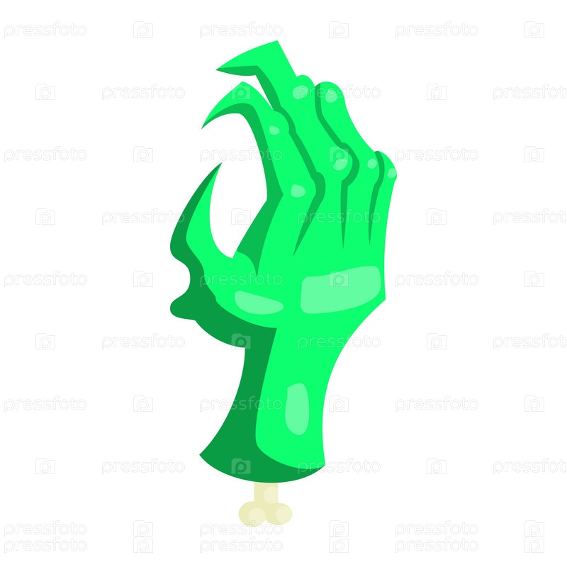 Икона руки зомби-зеленого монстра в стиле мультфильма на белом фоне