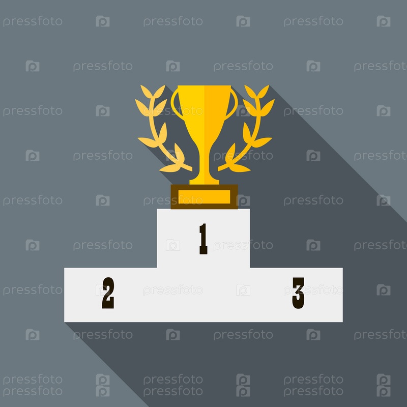Награда 'Кубок победителя' на белой иконе подиума в плоском стиле на сером фоне