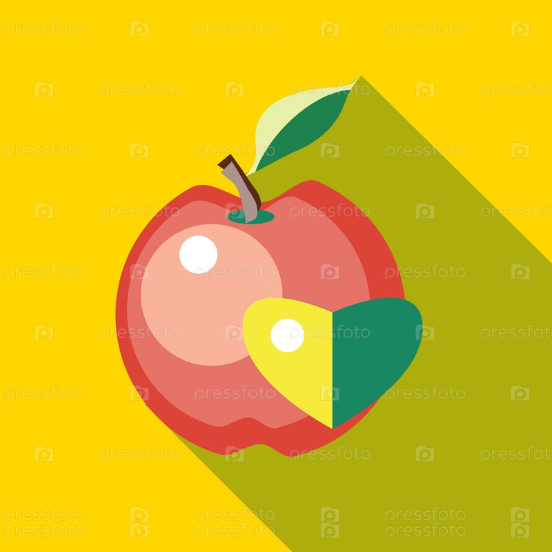 Красное яблоко с иконой сердца в плоском стиле на лавандовом фоне
