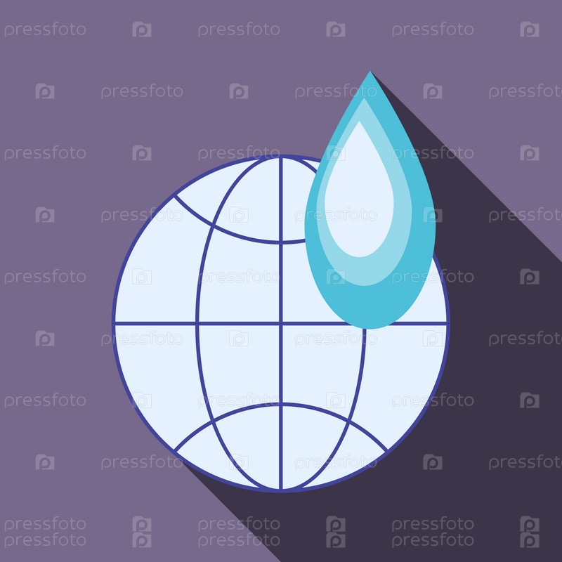 Икона глобуса и капли воды в плоском стиле на лавандовом фоне