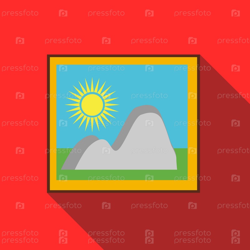 Картина в раме на иконе стены в плоском стиле на красном фоне