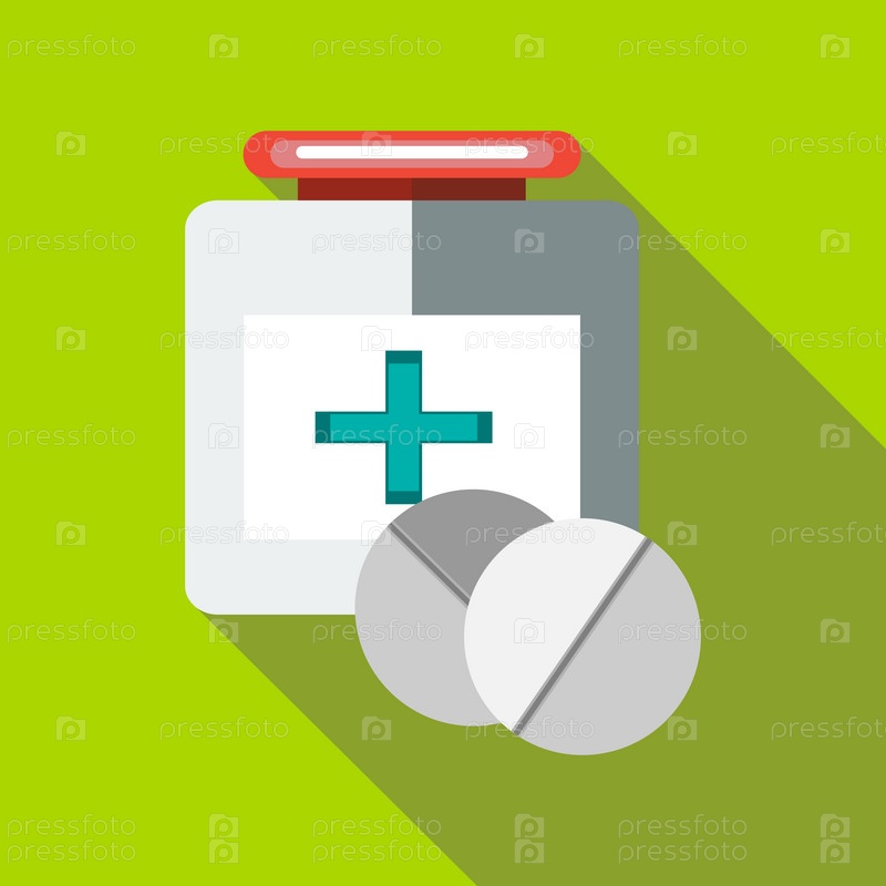 Икона лекарственных бутылок и таблеток в плоском стиле на зеленом фоне