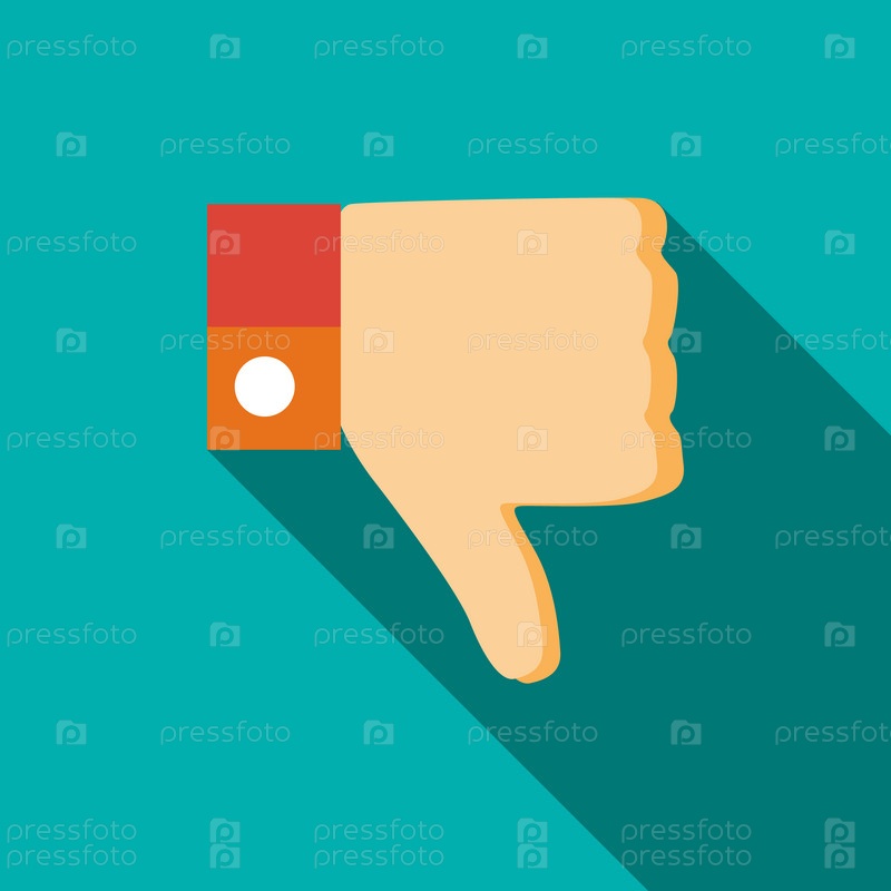 Икона жестов пальцем вниз в плоском стиле на бирюзовом фоне