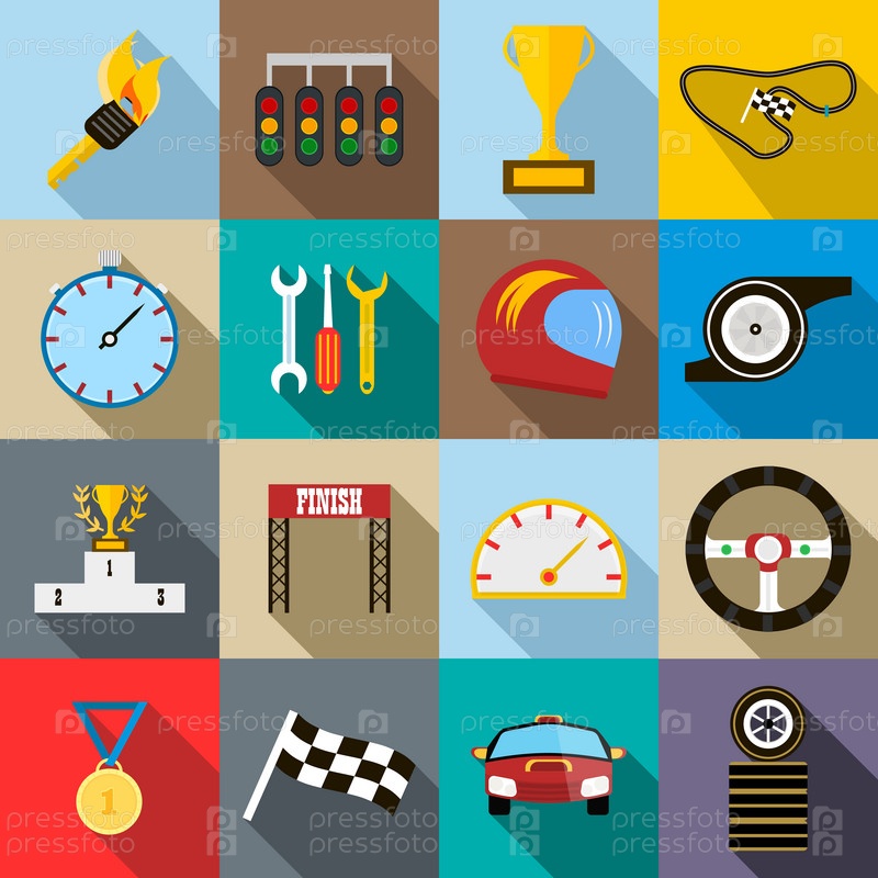 Набор икон, плоский стиль Race