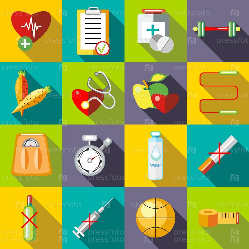 Набор фитнес-икон, плоский стиль