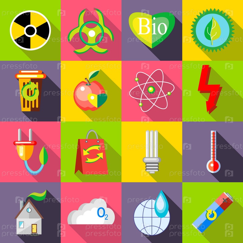 Набор икон экологии, плоский стиль