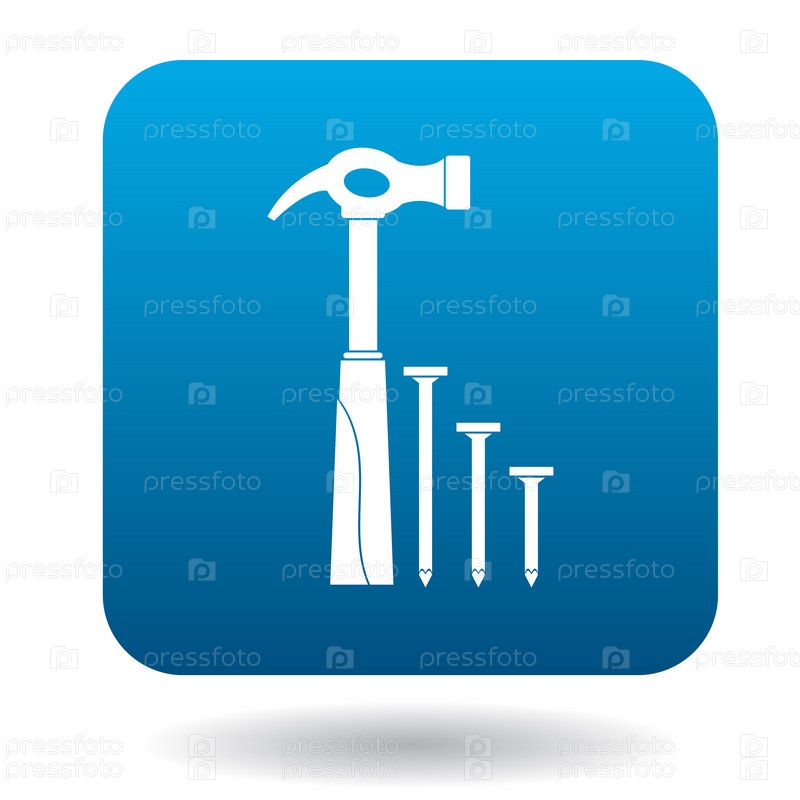 Икона молотка и гвоздей в простом стиле на белом фоне