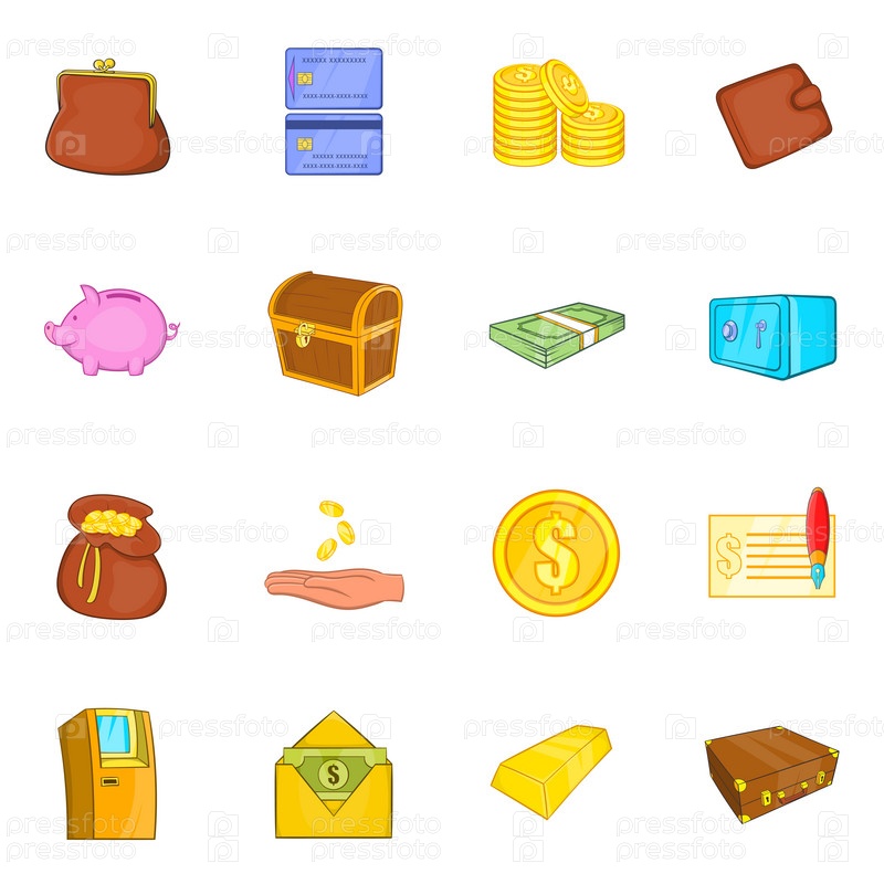 Набор икон финансов, в стиле мультфильма