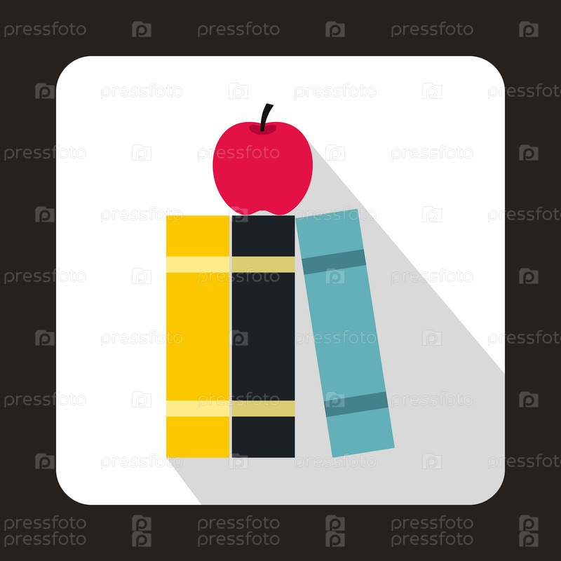 Куча книг и красная яблочная икона в плоском стиле на белом фоне