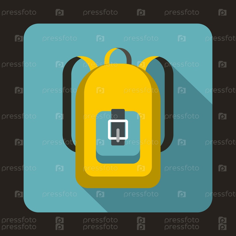Икона желтого рюкзака в плоском стиле на синем фоне