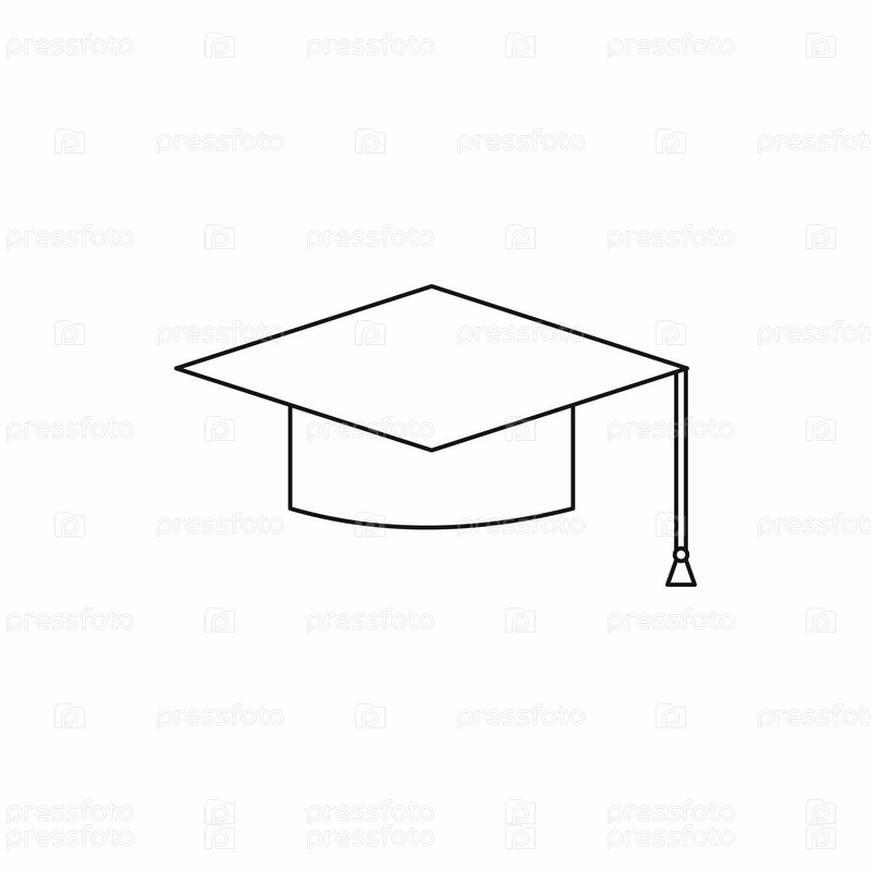 Иконка выпускной шляпы, стиль контуры