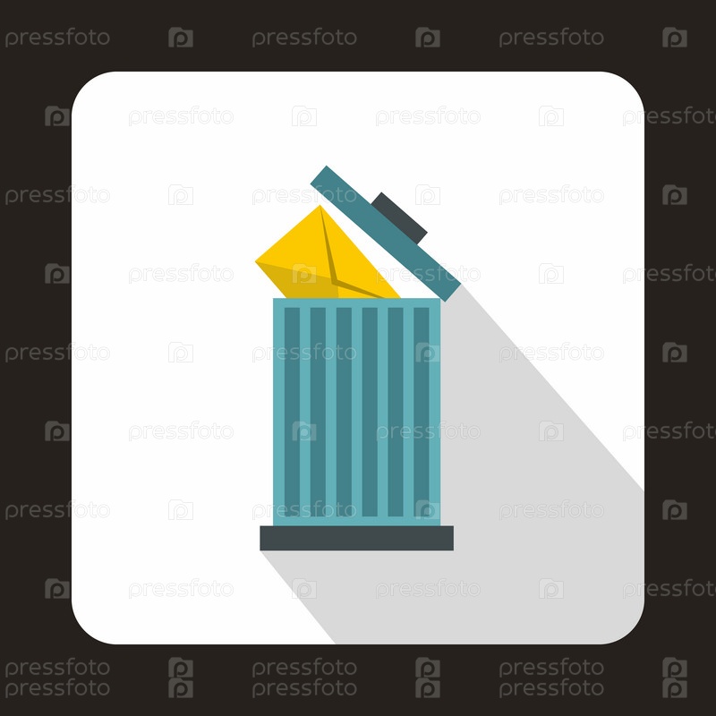 Желтый конверт в мусорной корзине икона в плоском стиле на белом фоне