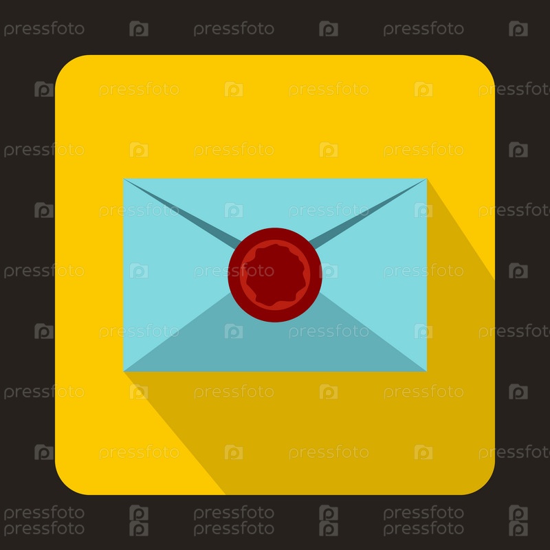 Конверт с иконой красного воскового печати в плоском стиле на желтом фоне