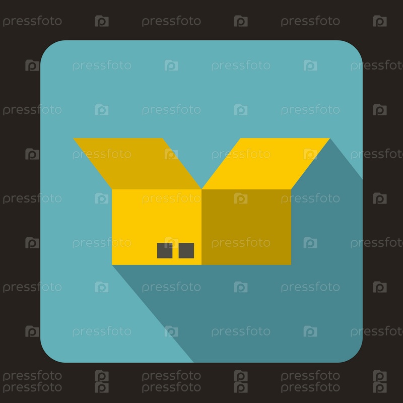 Открытая икона картонной коробки в плоском стиле на синем фоне